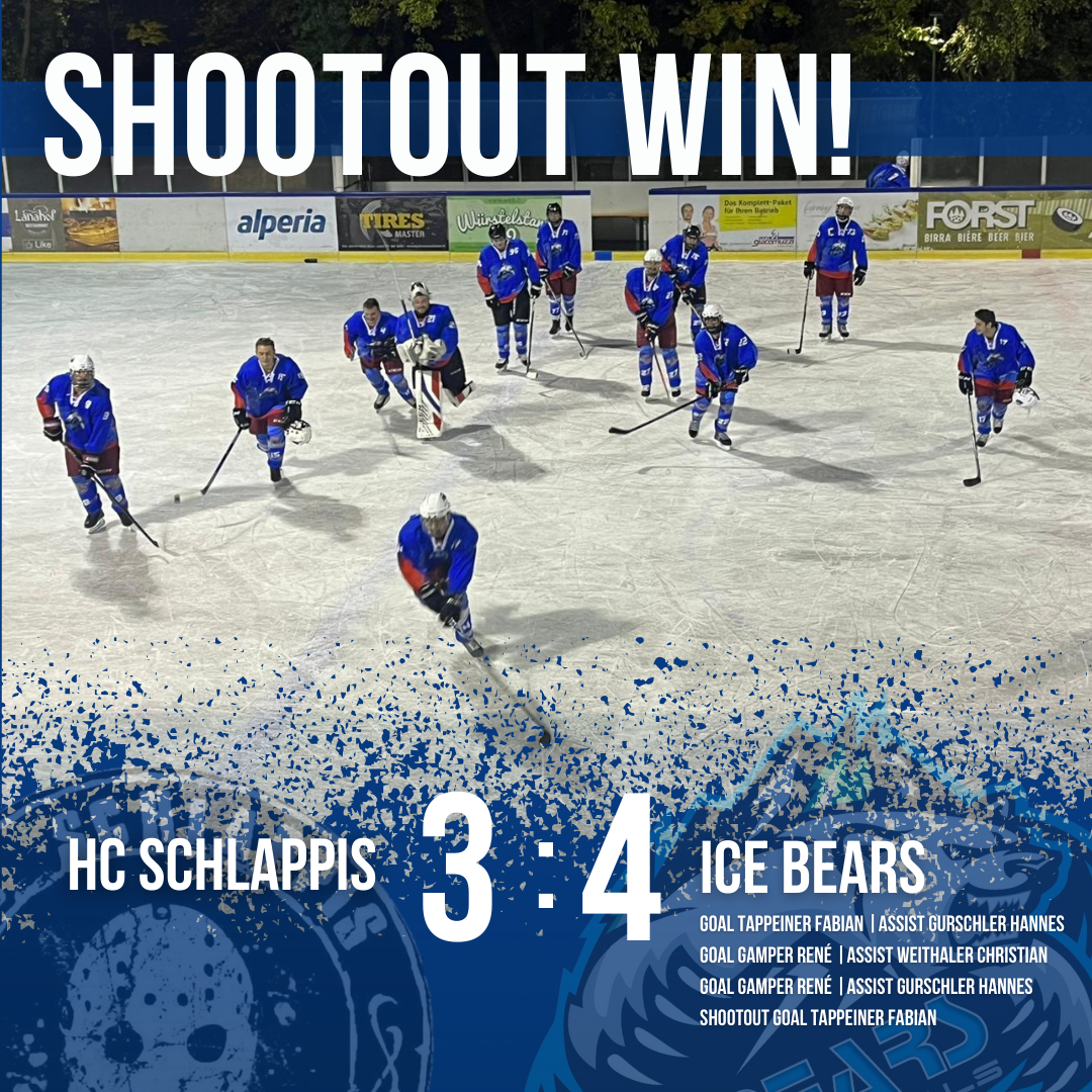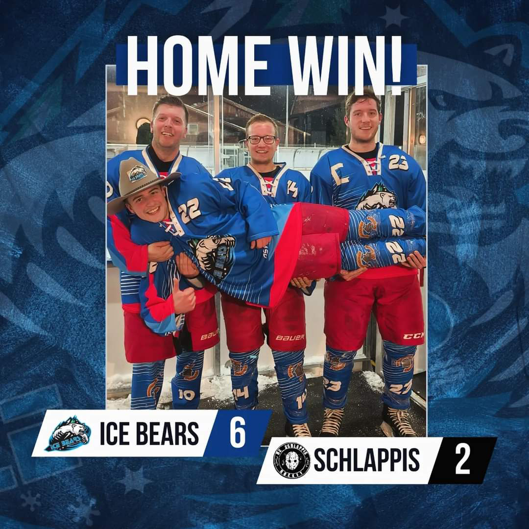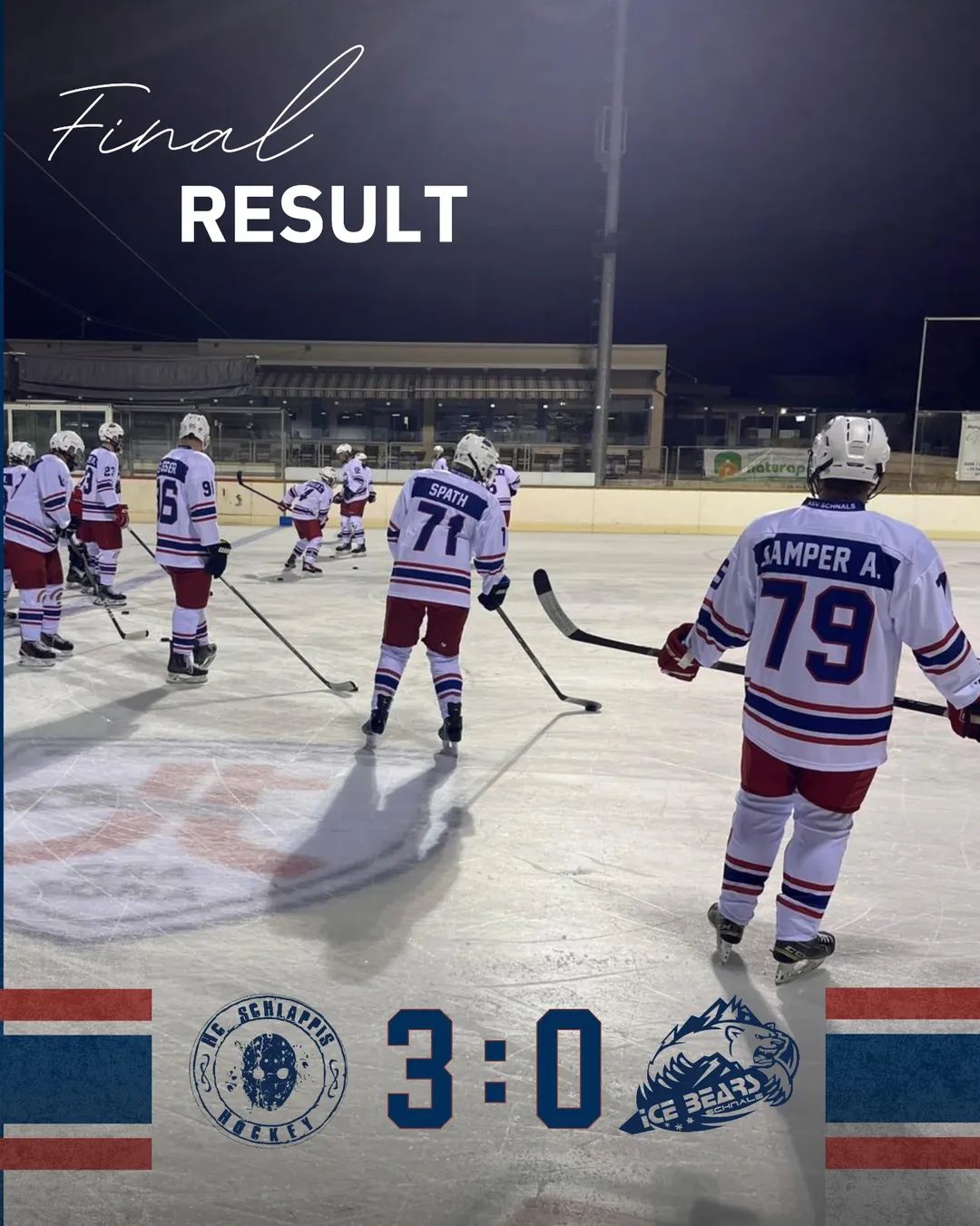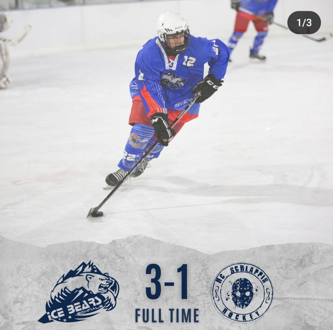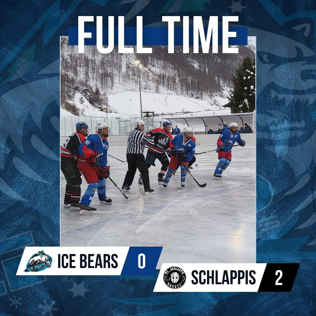Im ersten Drittel kamen wir gut ins Spiel. Immerwieder spielten wir uns Chancen heraus, aber die Hartgummischeibe wollte einfach nicht ins Netz. Auch der Gegner kam zu einigen Möglichkeiten, die wir aber gut abwehren konnten. Im zweiten Spielabschnitt versuchten wir weiter den Führungstreffer zu erziehlen, aber mit etlichen Abseitssituationen und unnötigen Strafen machten wir uns selber das Leben schwer. Schließlich gelang es den Gästen in Führung zu gehen und nicht lange danach nutze der HC Schlappis ein Powerplay aus um den Vorsprung auf 0:2 auszubauen. Im dritten Drittel versuchten die IceBears alles um den Anschlusstreffer zu erzwingen, die Gäste gingen in die Defensive und verteidigten ihre Führung geschickt, immerwieder gelang es ihnen Konter und Alleingänge herauszuspielen, die unser starker Goalie Zambiasi aber zunichte machte.Schließlich lief uns die Zeit davon und es gelang uns nicht den Homeopener für uns zu entscheiden.