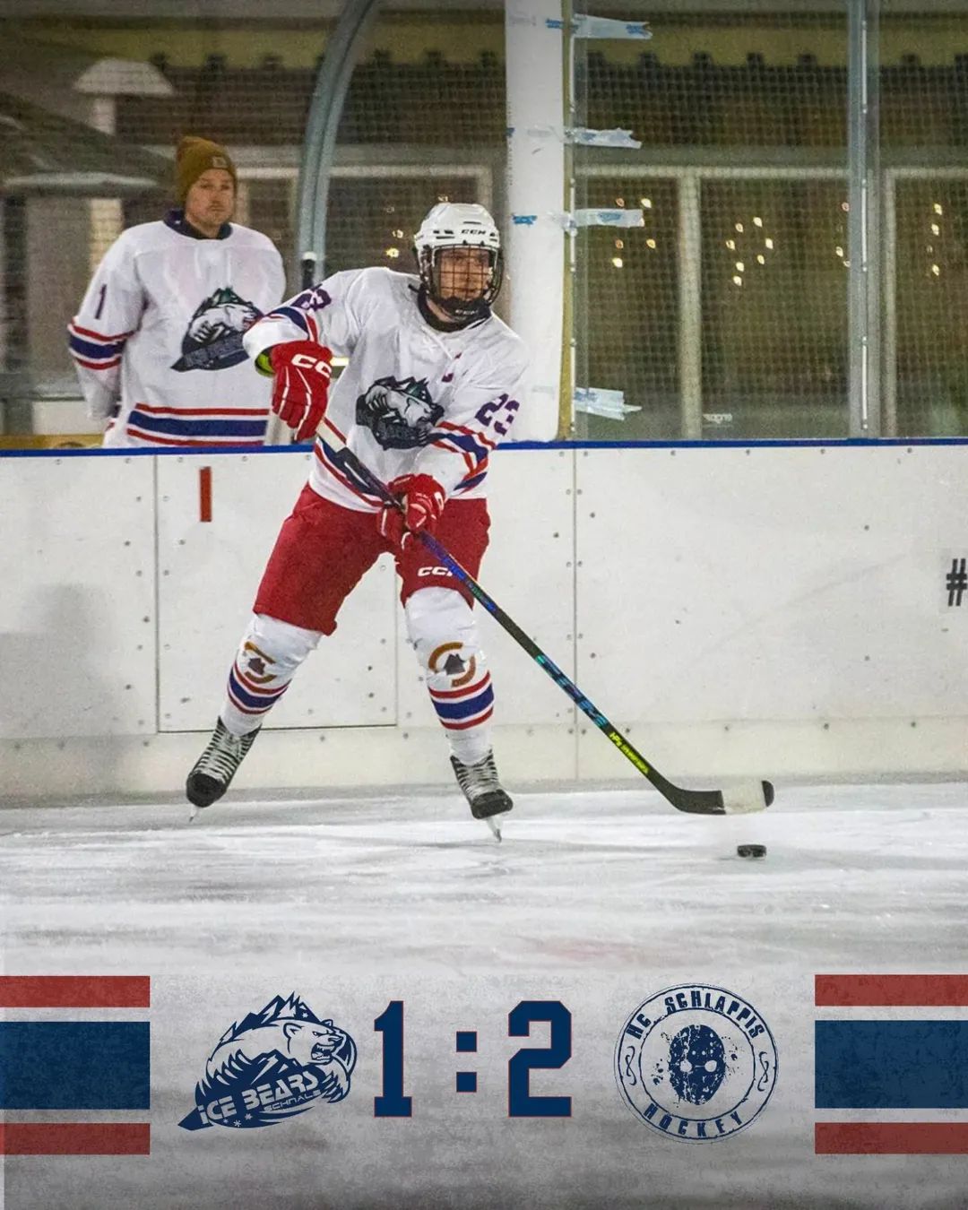 Gleich von Anfang an war klar, dass wir es mit einem sehr starken Gegner zu tun haben. Sie machten viel Druck und erarbeiteten sich viele Chancen. Doch wir konnten mithalten und so stand es nach dem ersten Drittel 2:1. Gestärkt kamen wir ins zweite Drittel und überraschten den Gegner mit zwei schnellen Toren. Wir versuchten den Vorsprung zu verteidigen und hatten sogar zweimal die Möglichkeit unseren Vorsprung zu erhöhen. Doch es sollte nicht sein und im Gegenzug konnte der Gegner aus Vilpian 20 Sekunden vor der Drittelpause ausgleichen. Im dritten Drittel kamen wir nicht mehr richtig ins Spiel und der Gegner konnte auf 5:3 erhöhen. Unser Goalie hatte im gesamten Spiel kaum Ruhephasen und entschärfte viele gefährliche Situationen.Torschützen der IceBears: 2x Rolfini, 1x Valgoi